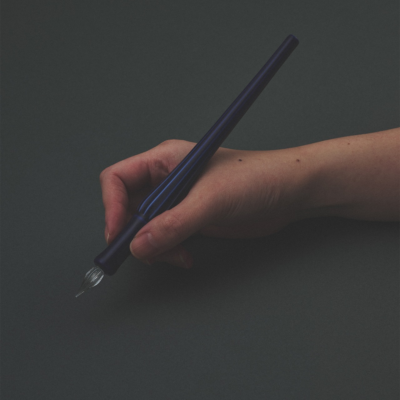 日本の伝統的な工芸品に多く用いられ、有田焼の代表的な色彩の一つ瑠璃色のガラスペン。