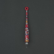 赤濃の鮮やかな色彩と金彩の豪華な装飾と唐花文の優雅なデザインが施された格式高いデザインのガラスペン。