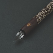 素地に模様を彫り込み、その溝に異なる色の土や釉薬を埋め込み模様を浮かび上がらせたガラスペン。